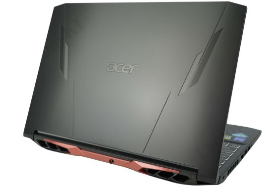 Acer Nitro 5 2021 AN515 nổi bật với thiết kế hầm hố và cá tính hơn nhiều so với các laptop gaming khác, với hai tông màu đỏ - đen chủ đạo và các góc cạnh cắt vát mạnh mẽ, tạo cảm giác như một chiếc xe đua.