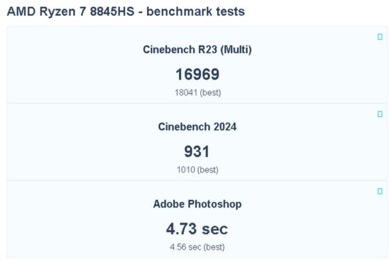 AMD Ryzen™ 7 8845HS (8C / 16T, 3.8 / 5.1GHz, 8MB L2 / 16MB L3) |