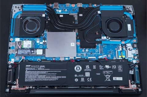 Acer Predator Helios 300 2022 được trang bị công nghệ làm mát vượt trội với hệ thống tản nhiệt chất lượng cao. Thiết kế này gồm 3 quạt tản nhiệt, trong đó có quạt AeroBlade 3D thế hệ thứ 5 độc quyền của Acer, kết hợp với thiết kế Vortex Flow. Ba quạt này làm việc cùng nhau để tối ưu hóa luồng khí và hướng gió, giúp làm mát hiệu quả các thành phần bên trong laptop, như CPU và GPU, và duy trì hiệu suất ổn định trong suốt quá trình sử dụng. Thiết kế cánh quạt 3D cải thiện hiệu suất làm mát và giảm tiếng ồn khi máy hoạt động ở tốc độ cao, đồng thời đảm bảo môi trường làm việc yên tĩnh hơn. Vì vậy, hệ thống tản nhiệt của Acer Predator Helios 300 đủ để đảm bảo rằng máy luôn duy trì nhiệt độ ổn định khi hoạt động với công việc đồ họa phức tạp.