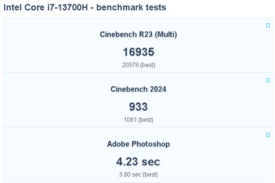 Intel® Core™ i7-13700H, 14C (6P + 8E) / 20T, P-core 2.4 / 5.0GHz, E-core 1.8 / 3.7GHz, 24MB |