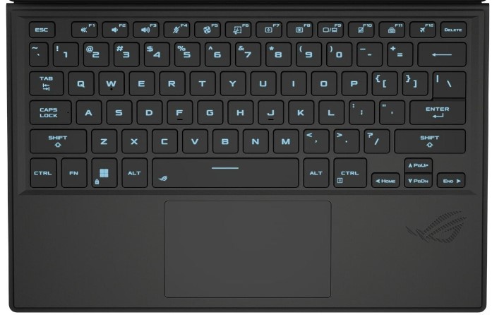 Asus ROG Flow Z13 GZ301VV 2024 đi kèm với một bàn phím có thể tháo rời, mở rộng không gian làm việc và giải trí cho người dùng. Bàn phím không chỉ mang lại sự tiện lợi mà còn tích hợp tính năng N-key rollover và hành trình phím 1.7 mm, tạo cảm giác nhấn phím chính xác và thoải mái đến tận cùng. Đèn nền RGB single-zone cũng làm cho chiếc laptop của chúng ta trở nên nổi bật ngay cả trong môi trường ánh sáng yếu.