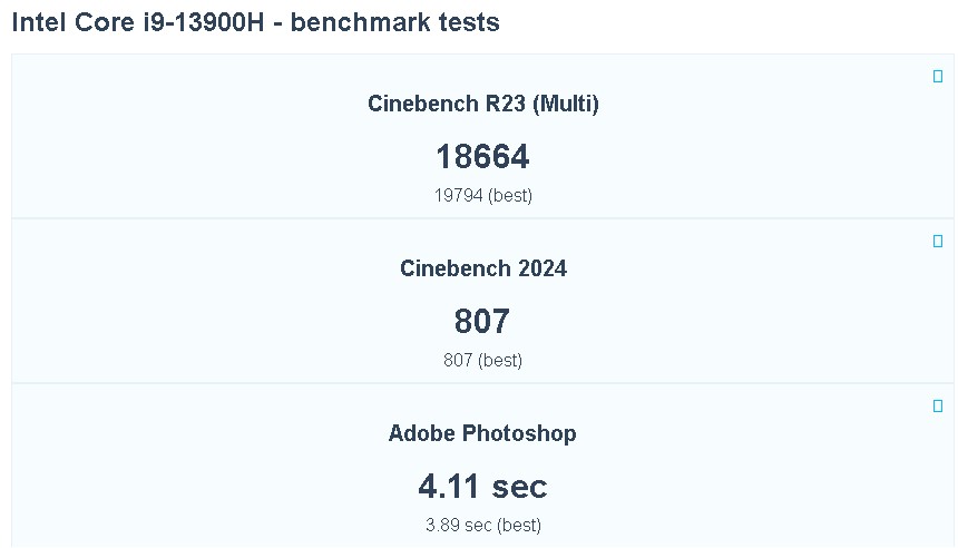 Intel 13th gen Raptor Lake, up to Core i9-13900H, 6C+8c/20T |
