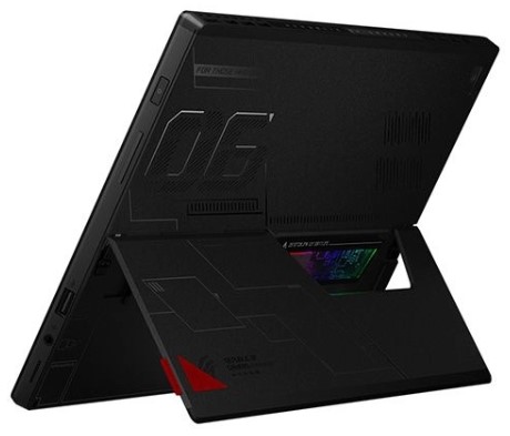 Thiết kế của Asus ROG Flow Z13 (2022) GZ301 lấy cảm hứng từ những con tàu vũ trụ trong các bộ phim khoa học viễn tưởng. Phiên bản này còn mang đến một thiết kế đa năng 2 trong 1, có thể biến thành một chiếc tablet thông qua chân đế đi kèm, với khả năng điều chỉnh lên đến 170 độ. Sự sắp xếp thông minh của các linh kiện phía sau màn hình cho phép ROG Flow Z13 tự đứng cân bằng trên bề mặt phẳng nhờ vào chân đế tích hợp. Điều này không chỉ cải thiện lưu thông không khí mà còn tăng hiệu quả tản nhiệt hơn so với các dòng laptop thông thường chỉ tản nhiệt từ mặt đáy.
