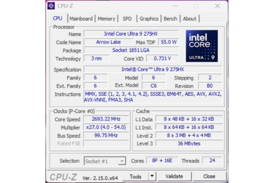 Intel Core Ultra 9 275HX cho hiệu năng vượt trội
