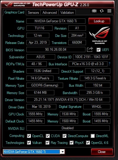 NVIDIA GeForce GTX 1660Ti cung cấp hiệu suất đồ họa mạnh mẽ cho nhiều tựa game phổ biến. Kiến trúc GPU Turing mới, kết hợp công nghệ đổ bóng lập trình và dò tia trong thời gian thực, mang lại hiệu ứng ánh sáng chân thực và trải nghiệm đắm chìm trong những tựa game mới nhất trên ROG Zephyrus M15 GU502LU.