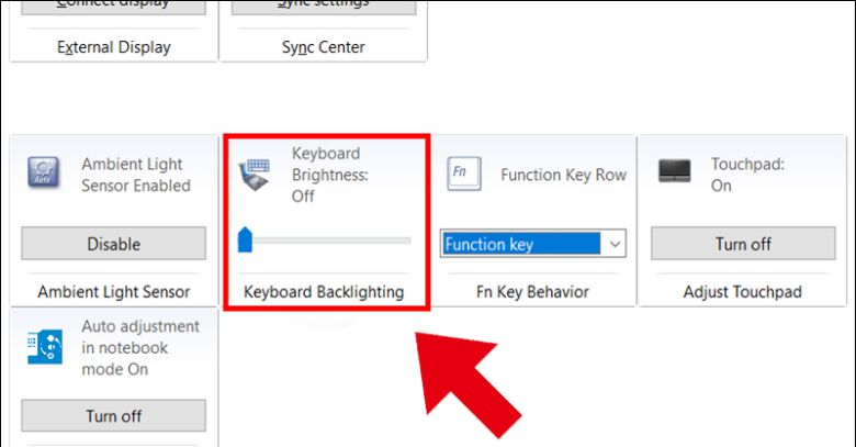 Bước 4: Tìm và chọn mục “Keyboard Backlighting”.