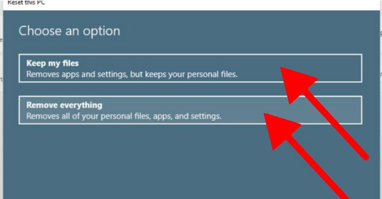 - Chọn phương án khôi phục: Khi cửa sổ Reset this PC xuất hiện, bạn sẽ có hai tùy chọn: