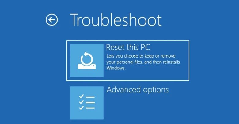 - Đi đến tùy chọn reset: Trong giao diện WinRE, chọn Troubleshoot, sau đó nhấp vào Reset this PC.