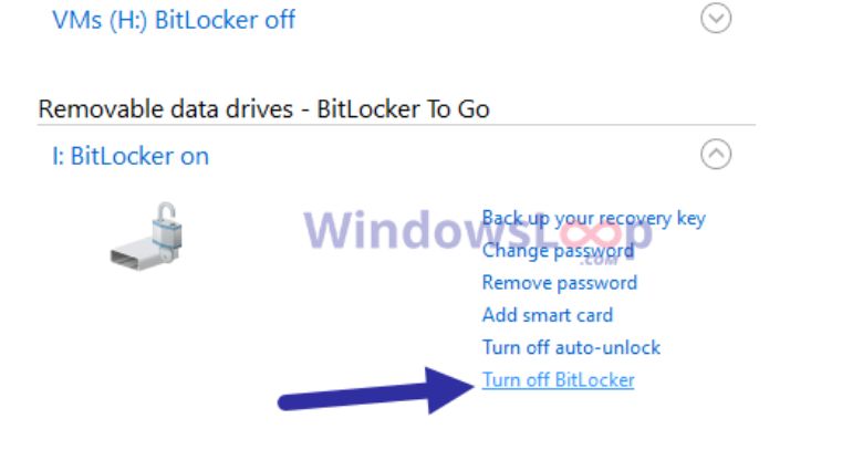 Nhấp vào tùy chọn "Turn off BitLocker"