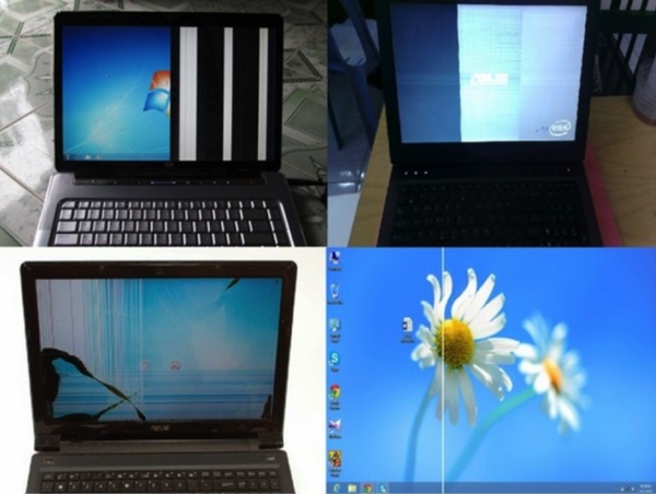● Va đập hoặc va chạm mạnh: Nếu màn hình bị va đập hoặc va chạm mạnh, nó có thể gây ra các vết xước hoặc gây hư hỏng các phần của màn hình, dẫn đến các điểm chết hoặc khiến máy bị gãy hay hở bẹ cáp làm cho màn hình xuất hiện các đường sọc ngang, sọc dọc nhiều màu