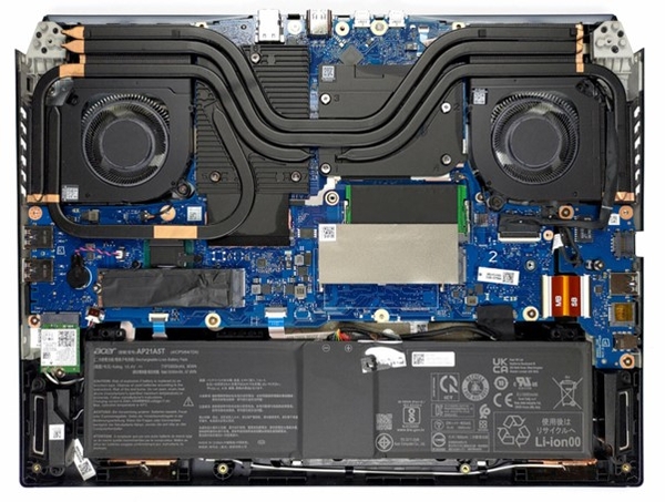 Khi xem qua cấu hình của Acer Predator Helios 16 PH16-71-71AV 2023, người dùng có thể tỏ ra tò mò và đặt ra câu hỏi: "Với cấu hình mạnh mẽ như vậy, liệu máy có tỏa nhiệt quá cao không?" Để giải đáp thắc mắc này, Acer đã trang bị cho Predator Helios 16 2023 công nghệ tản nhiệt độc quyền, được xem là hàng đầu trong phân khúc. Với sự kết hợp của 2 quạt kim loại 3D AeroBlade™ thế hệ 5 có tới 89 cánh quạt, hệ thống tản nhiệt này mang lại hiệu suất làm mát vượt trội. Điểm đặc biệt là việc sử dụng ống đồng cải tiến dạng Vector và keo tản nhiệt kim loại lỏng cho CPU Intel thế hệ 13 bên trong máy.