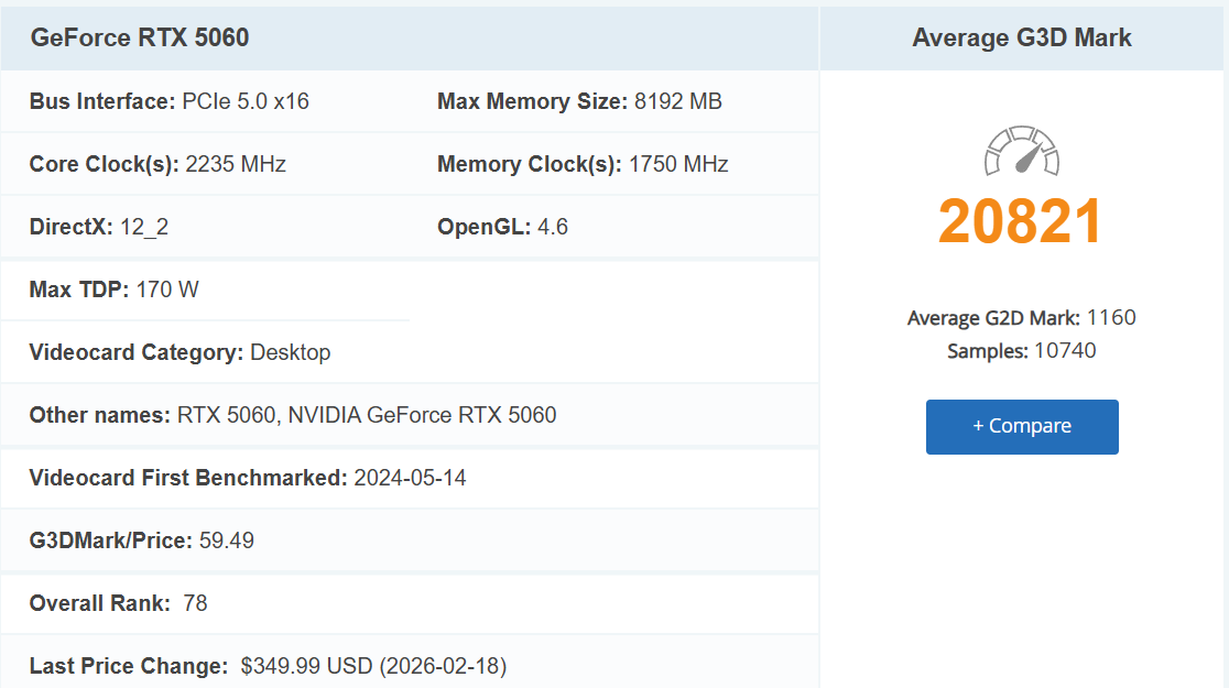 Test GPU RTX 5060 trên benchmark