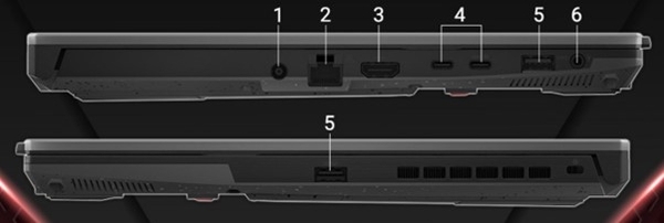 - ASUS TUF A15 FA507 có nhiều tùy chọn kết nối bao gồm cổng USB Type-C, HDMI 2.0b, cổng audio jack, và các cổng USB Type-A.