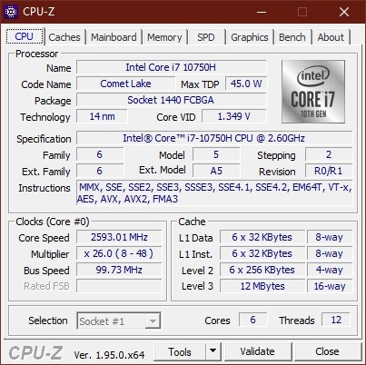 - Bộ vi xử lý là Intel Core i7-10750H (6 lõi / 12 luồng, tốc độ từ 2.6GHz đến 5.0GHz, bộ nhớ cache 12MB).