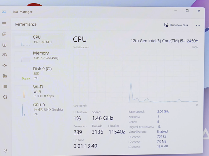 Test CPU Intel Core i5-12450H