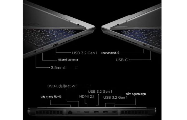 Ngoài ra, Lenovo Legion 5 Pro 16IAH7H i7 còn ấn tượng với sự thông minh trong thiết kế, đặc biệt là việc mở rộng các cổng kết nối và lỗ tản khí ra phía sau máy. Điều này không chỉ tăng tính thẩm mỹ mà còn giúp tối ưu hóa quá trình tản nhiệt, đảm bảo hiệu suất máy luôn ổn định trong mọi tình huống.