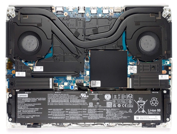 Legion 5 Pro 16IAH7H i7 nổi bật với khả năng tản nhiệt xuất sắc, chủ yếu nhờ vào bộ tản nhiệt hiệu quả. Sử dụng công nghệ tiên tiến, hệ thống tản nhiệt hai kênh này có khả năng làm mát CPU và GPU riêng biệt, giữ cho nhiệt độ hệ thống ổn định. Các lỗ thông hơi trên bộ tản nhiệt không chỉ cải thiện lưu thông không khí, mà còn đồng bộ nhiệt chuyên dụng, mang lại trải nghiệm gõ phím mát mẻ hơn và giảm tiếng ồn hệ thống.