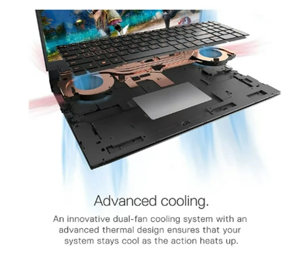 - Tản nhiệt vượt trội với khe tản nhiệt lớn và quạt kép giúp máy duy trì nhiệt độ ổn định ngay cả khi xử lý tác vụ nặng.