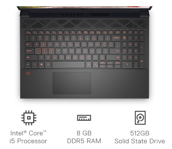 Dell G15 5520 i5 cũng được trang bị 8GB RAM DDR5 cùng ổ cứng SSD 512GB tốc độ cao NVMe, cho phép máy khởi động game và mở các file công việc nặng một cách nhanh chóng, chỉ trong vài giây. Tổng thể, với cấu hình khủng như vậy, Dell G15 5520 i5 được đánh giá là một trong những chiếc laptop gaming đáng trải nghiệm nhất hiện nay.