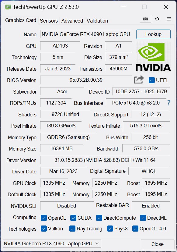 Predator Triton 17X không chỉ dừng lại ở đó, mà còn được trang bị bộ xử lý đồ họa NVIDIA GeForce RTX 4090 với 16 GB GDDR6 VRAM. Với cấu hình mạnh mẽ này, máy tính xách tay này có khả năng đáp ứng đầy đủ các yêu cầu về đồ họa cao cấp và chơi các trò chơi triple-A hiện đại một cách mượt mà và linh hoạt.