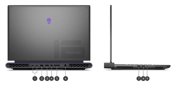 Dell Alienware M16 R1 hướng đến đối tượng game thủ nên được trang bị hầu hết các cổng kết nối cần thiết.
