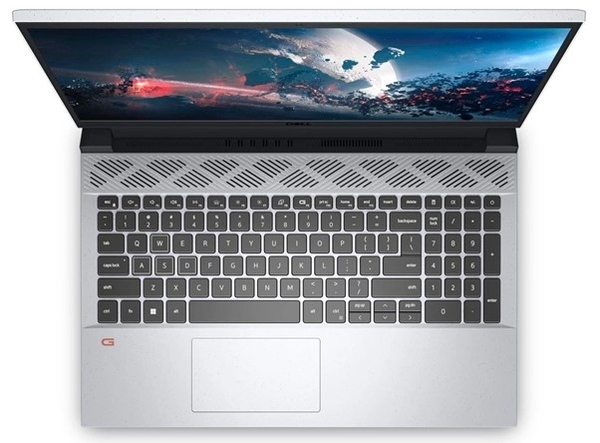 Với một vẻ ngoài tinh tế và hấp dẫn, Dell G15 5525 được trang bị lớp vỏ màu xám huyền bí và các đốm chấm phá cách. Trên vỏ máy, hai đường vân giao nhau nổi bật làm nổi bật logo của hãng một cách đơn giản nhưng tinh tế.