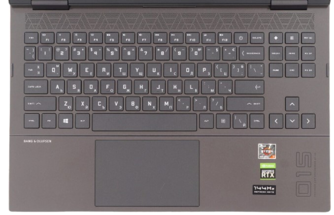 Bàn phím của HP OMEN 15 15z en100 2021 đã được thiết kế lại, với bố trí các phím rộng hơn, tối ưu hóa trải nghiệm gaming. Hệ thống ký tự được thiết kế lại, trông góc cạnh và hầm hố hơn. Chiếc máy đã lược bỏ hệ thống phím số so với phiên bản trước. Keycaps được làm phẳng, tuy nhiên hành trình phím sâu, phản hồi tốt. Hệ thống LED RGB sáng đều, không quá chói, tạo ra một hiệu ứng ánh sáng hài hòa và đẹp mắt.