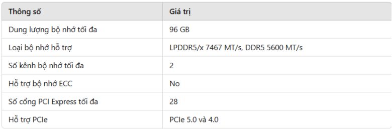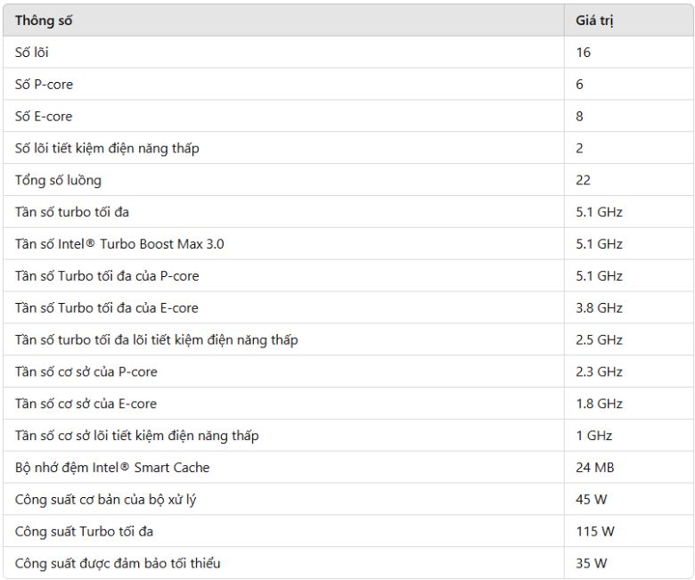 Intel Core Ultra 9 185H sở hữu số lượng lõi và luồng ấn tượng, cung cấp hiệu năng vượt trội cho các tác vụ nặng nề. Sau đây là các bảng thông số chi tiết của intel core ultra 9 185H để giúp bạn dễ dàng nắm bắt những tính năng nổi bật của vi xử lý.