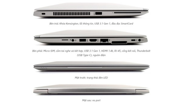 Ngoài các cổng tiêu chuẩn như USB 3.0, HDMI, cổng mạng LAN và cổng USB Type-C, HP đã trang bị cho HP Elitebook 840 G5 một loạt cổng kết nối đặc thù trong phân khúc laptop doanh nhân, bao gồm đầu đọc SmartCard và khe cắm SIM 4G. Nhờ các tính năng này, người dùng có thể duy trì kết nối internet mà không bị gián đoạn.
