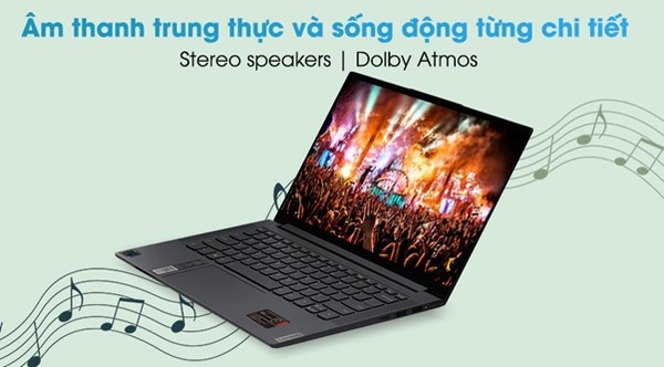 Lenovo Yoga Slim 7 mang đến âm thanh hàng hiệu với hệ thống loa Dolby Atmos®, tạo nên trải nghiệm giải trí di động tuyệt vời. Với Dolby Atmos, bạn sẽ có trải nghiệm nhập vai tuyệt vời khi xem phim hay chơi game, với âm thanh chất lượng cao và chân thực, như một rạp chiếu phim thu nhỏ. Công nghệ loa Stereo speakers mang đến cảm giác không gian và vị trí âm thanh đến từng âm riêng biệt, với việc di chuyển âm thanh qua lại giữa hai loa, tạo ra những trải nghiệm thú vị mà bạn chưa từng trải qua.