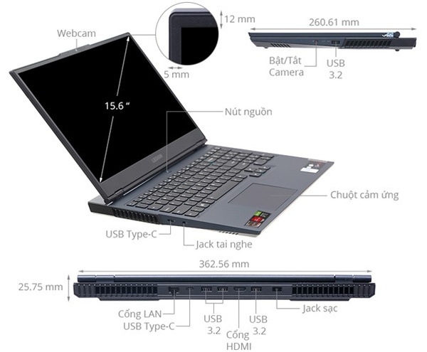 Đối với các bạn trẻ, hiệu năng không chỉ là yếu tố quan trọng hàng đầu mà cả thiết kế cũng được xem xét kỹ trước khi quyết định mua một chiếc laptop. Laptop Lenovo Legion 5 15IAH7 thuộc dòng sản phẩm hướng đến gaming và đồ họa, tỏ ra mạnh mẽ và nam tính hơn. Máy có màu xám tinh tế, thể hiện phong cách gaming mạnh mẽ, đồng thời mang đến vẻ trẻ trung và lịch lãm, phù hợp với sở thích của nhiều người dùng ngày nay.