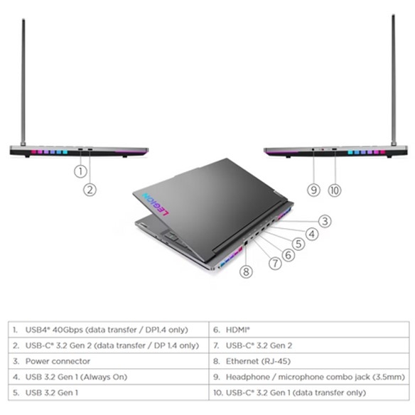 Đáp ứng mọi nhu cầu đa dạng của người sử dụng, laptop Lenovo Legion 7 2022 16ARHA7 được trang bị một loạt các cổng kết nối phong phú. Bên cạnh đó, máy sử dụng Killer Wi-Fi 6 AX1650 11ax, 2x2, cung cấp kết nối mạng không dây siêu nhanh, ổn định và bảo mật cao, hoàn hảo cho việc học tập, công việc và giải trí. Điều này đảm bảo bạn có sự linh hoạt trong việc truy cập internet.
