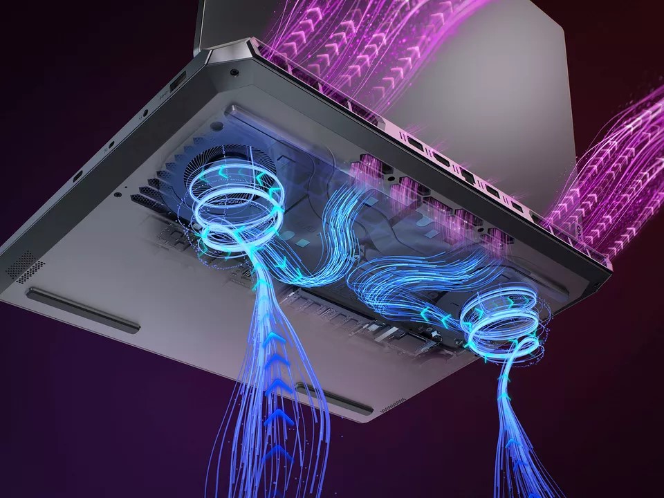 - Tản nhiệt hiệu quả: Hệ thống tản nhiệt Hyper Chamber với hai quạt và ba ống đồng lớn, kết hợp với bốn khe thoát nhiệt thông minh, giữ máy luôn mát mẻ ngay cả khi hoạt động với cường độ cao.