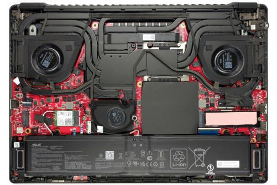 ASUS ROG Zephyrus M16 (2023) GU604 sở hữu hệ thống tản nhiệt tiên tiến, với ba quạt tản, 7 ống đồng và hợp chất tản nhiệt kim loại lỏng Thermal Grizzly, mang đến khả năng làm mát vượt trội.