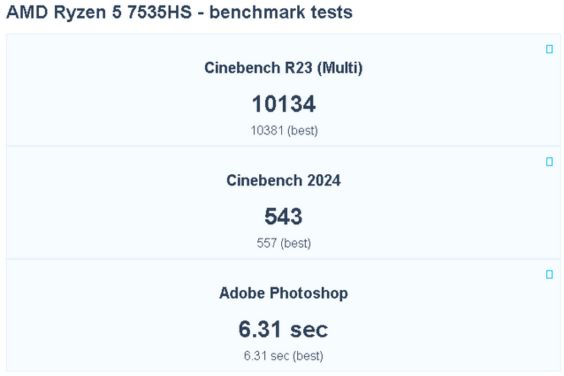 - Hiệu năng mạnh mẽ: Chip Ryzen™ 5 7535HS với card đồ họa AMD Radeon RX 6550M cung cấp hiệu năng tốt, xử lý mượt mà các tựa game HOT.
