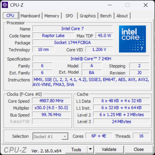 Intel® Core™ 7 Processor (Series 2) 240H (24MB cache, 10 cores, 1.80 to 5.20 GHz P-Core)