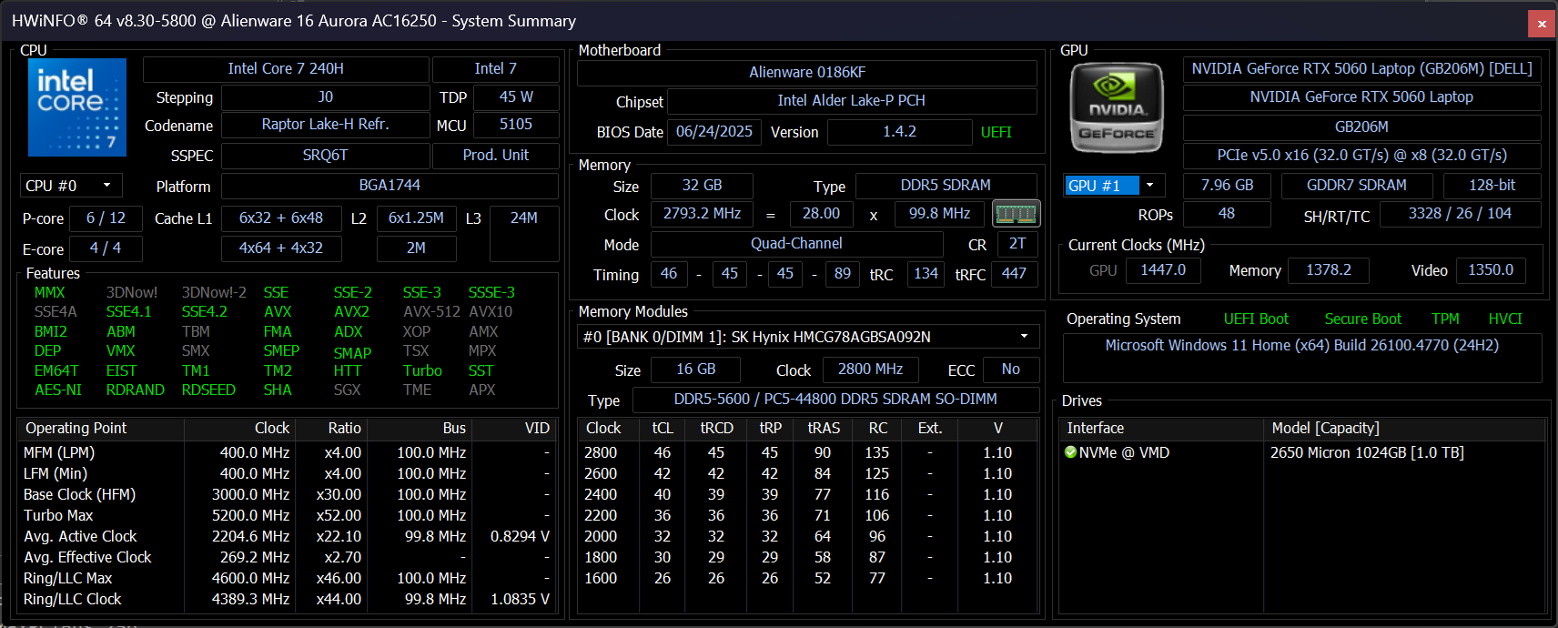 CPU Intel Core 7 trên Dell Alienware 16 Aurora