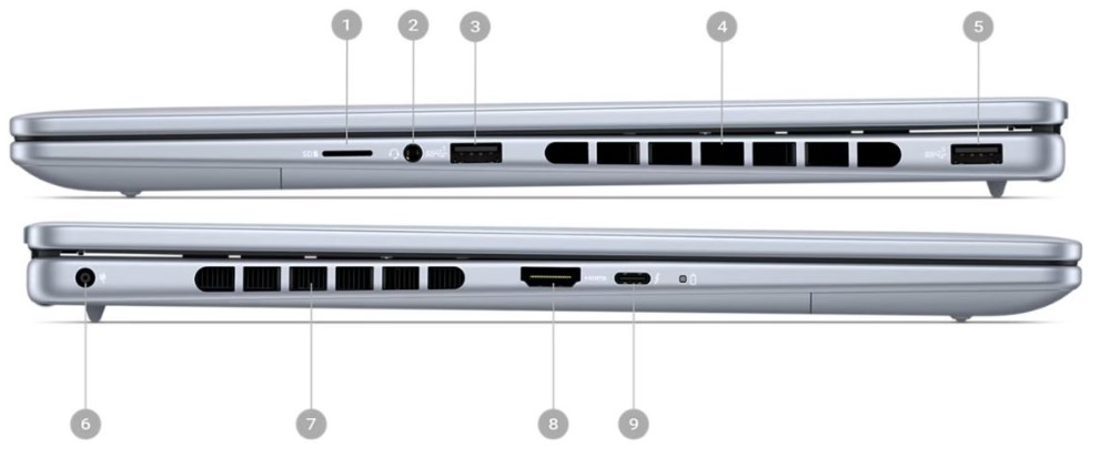 Dell Inspiron 16 7640 được trang bị đầy đủ các cổng kết nối hiện đại cần thiết.