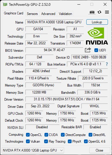NVIDIA Quadro RTX A3000 12GB, GDDR6 & Intel® UHD Graphics 630 |