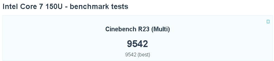 Intel® Core™ 7 Processor 150U 1.8 GHz up to 5.4 GHz 12 MB Smart Cache |
