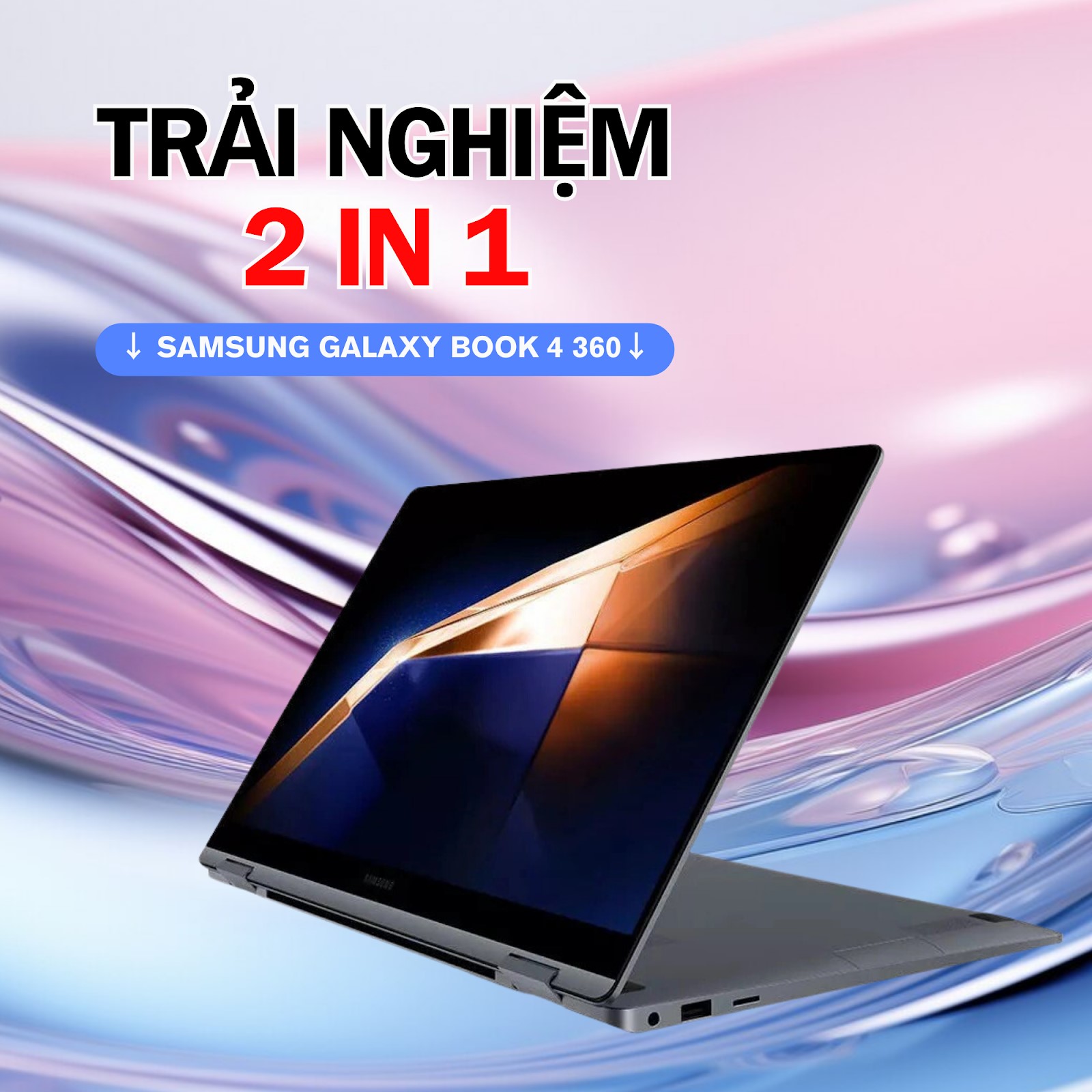 Samsung Galaxy Book 4 360 là một chiếc Ultrabook 2 in 1 với chất lượng build chắc chắn. Máy sở hữu màn hình FHD tuyệt đẹp cùng thiết kế gọn nhẹ, mang lại sự linh hoạt và tiện lợi khi sử dụng. Hiệu năng mạnh mẽ của Galaxy Book 4 360 đủ để xử lý mượt mà mọi tác vụ văn phòng, nhờ vào bộ vi xử lý thế hệ mới nhất.
