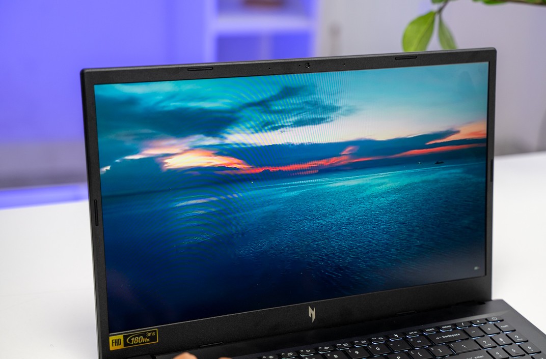 Lý do đầu tiên khiến Nitro V hợp với đồ họa nằm ở màn hình. Vẫn là 15.6 inch Full HD nhưng có 100% sRGB, nhìn hình ảnh rõ ràng, màu sắc dễ chịu, làm bài hay chỉnh ảnh không bị cảm giác “nhạt màu”. Dùng lâu cũng đỡ mỏi mắt hơn mấy màn gaming phổ thông.