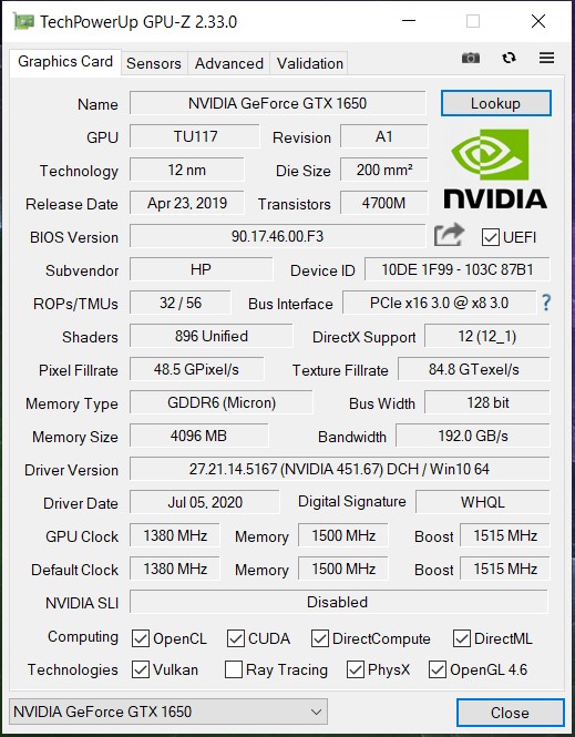 Nvidia Geforce GTX 1650 4gb |
