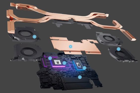 Chiếc laptop này còn được trang bị 4 quạt tản nhiệt với cánh siêu mỏng, tối ưu luồng gió và tăng áp suất khí. Mang lại khả năng tản nhiệt mạnh mẽ, làm mát hiệu quả toàn bộ khung máy và duy trì hiệu suất cao ổn định trong suốt quá trình sử dụng.