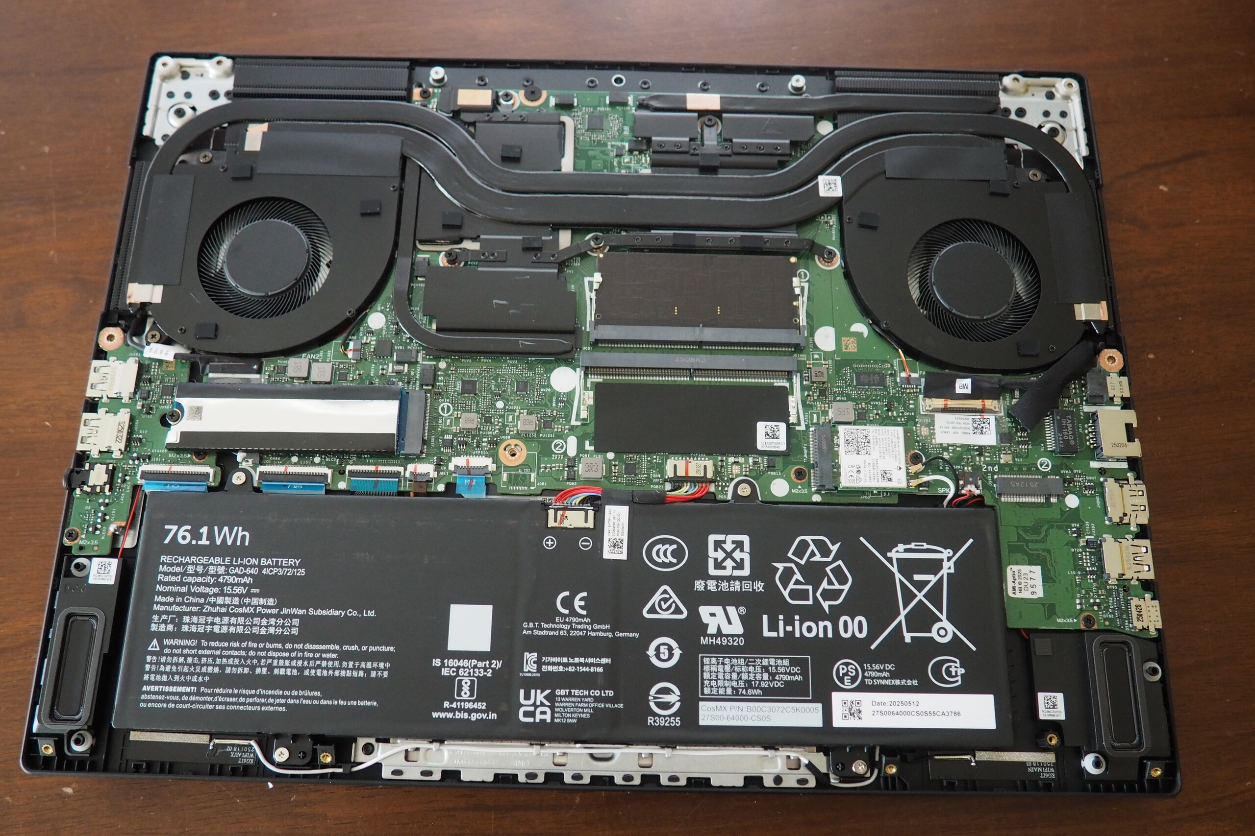 Gigabyte A16 có 2 khe RAM DDR5 (max 64GB) và 2 khe SSD M.2 (1 Gen3 + 1 Gen4). Đây là điểm cộng lớn nếu bạn có ý định dùng máy 3–5 năm. SSD 512GB đủ dùng ban đầu nhưng có thể nâng thêm nếu cài nhiều game.