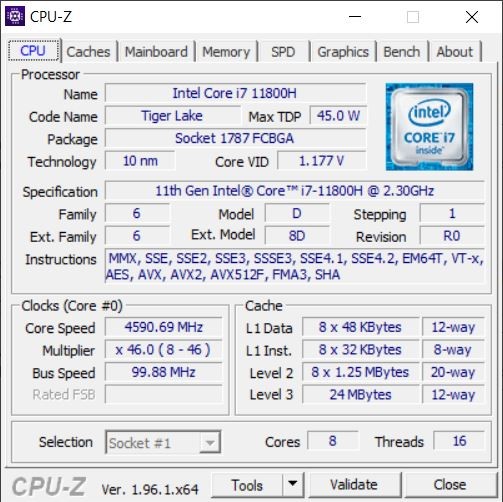 Intel Core i7-11800H 2.3GHz up to 4.6GHz 24MB |