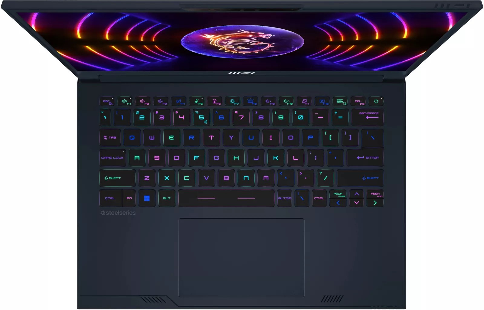 MSI đã hợp tác với STEELSERIES, một hãng sản xuất linh kiện hàng đầu, để tạo ra bàn phím Chiclet keyboard Steelseries với đèn nền RGB led Per-key độc đáo. Điều này mang lại cho MSI Stealth 14 Studio khả năng điều chỉnh màu sắc đèn vô cùng độc đáo và thú vị.