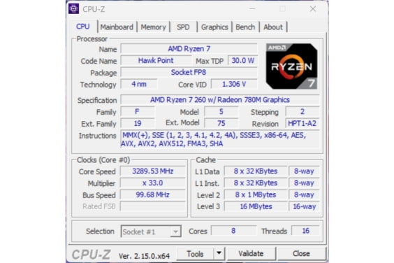 AMD Ryzen™ 7 260 (8C / 16T, 3.8 / 5.1GHz, 8MB L2 / 16MB L3) |