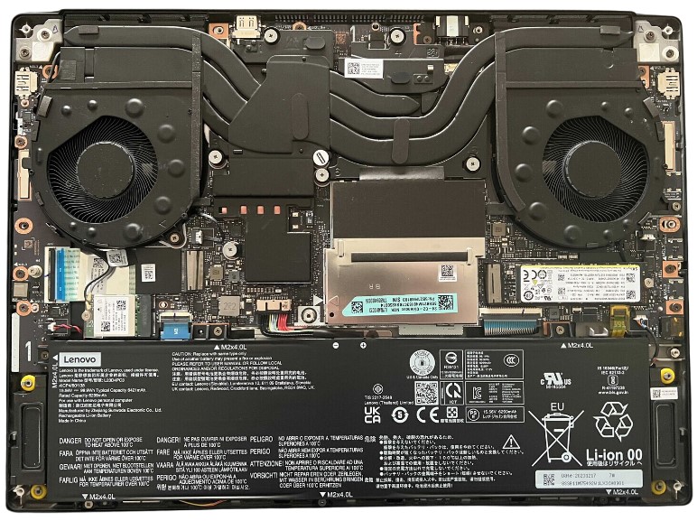 Với sự kết hợp của 2 quạt lớn hướng vào bên trong, không khí nóng được đẩy ra từ cạnh bản lề mà không gây ảnh hưởng đến việc sử dụng của người dùng, đặc biệt là trong thời gian dài và trong các tình huống cần sự tập trung cao. Hệ thống ống đồng dẫn nhiệt đã được tối ưu hóa với tiết diện tiếp xúc được cải thiện, cùng với công nghệ tản nhiệt mới Legion ColdFront Hyper, mà Lenovo tự hào công bố rằng sẽ tăng thêm 25W công suất trong chế độ Extreme mode (High Performance) mà vẫn giảm được lượng nhiệt phát sinh. Điều này không chỉ tăng hiệu suất hoạt động mà còn giảm tiếng ồn so với thiết kế trước đó, tạo ra một trải nghiệm sử dụng yên bình và mượt mà hơn.
