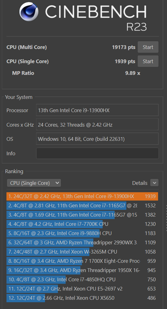 Intel® Core™ i9-13900HX, 24C (8P + 16E) / 32T, P-core up to 5.4GHz, E-core up to 3.9GHz, 36MB
